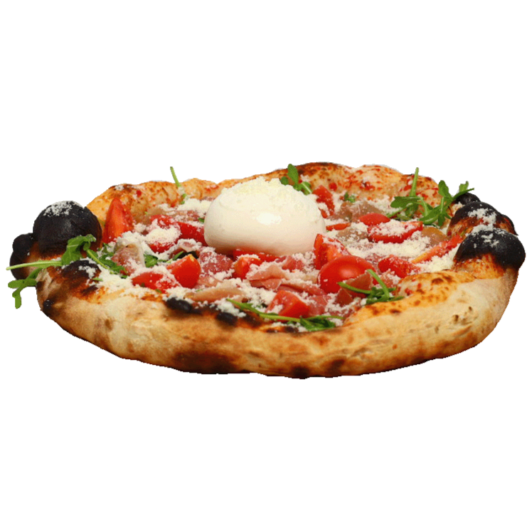 Доматен Сос, Моцарела, Рукола, Чери Домати, Прошуто Крудо, Бурата, Пармезан